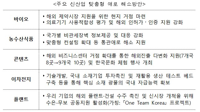 바이오, 농수산식품 등 신성장 산업에 대한 맞춤형 애로 해소와 함께 전시사업 정상화도 적극 지원한다.