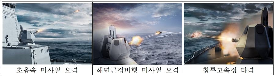 근접방어무기체계는 대함유도탄, 항공기 등 적 위협으로부터 우리 해군 함정의 생존을 위한 최후 방어 무기체계로서 대함유도탄방어유도탄(RAM 또는 해궁)으로 요격에 실패할 경우 최후 단계에서 요격하는 무기체계이다.