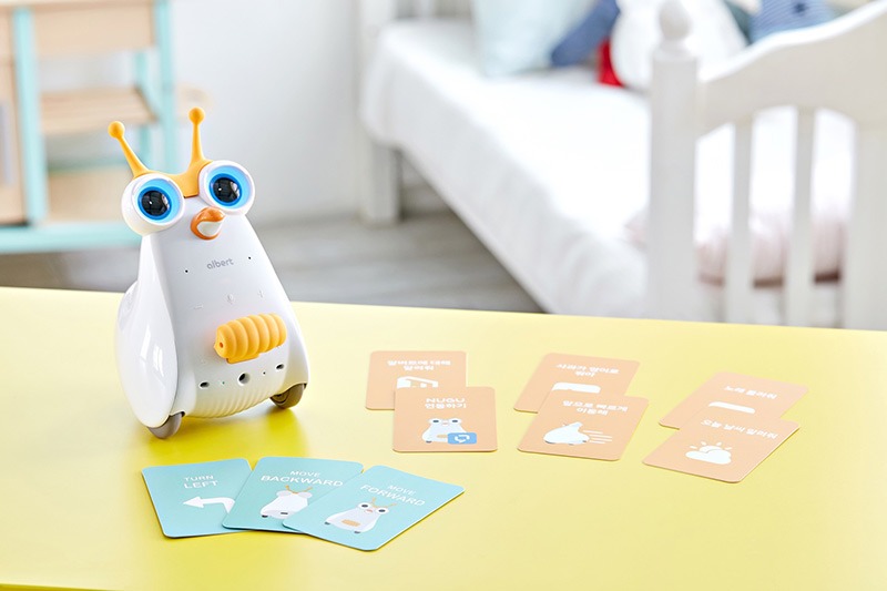 이에 SK텔레콤은 기존 교육용 코딩로봇인 ‘알버트’에 인공지능 ‘누구’를 탑재, 가정에서 코딩학습 뿐 아니라 ‘누구’의 다양한 서비스까지 함께 즐길 수 있는 국내 최초 AI 코딩로봇 ‘알버트AI’를 개발했다.