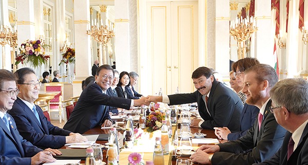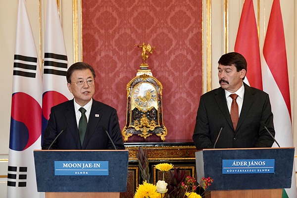 헝가리를 국빈방문 중인 문재인 대통령은 3일(현지시간) 아데르 야노시 헝가리 대통령과 정상회담을 하고 ▲양국 관계 ▲한반도·유럽 정세 ▲기후변화 대응·코로나19 이후 경제 회복 등 양국 관심사에 대해 폭넓게 논의했다.