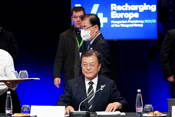 문 대통령은 “‘비세그라드 그룹’ 헝가리, 체코, 슬로바키아, 폴란드는 유럽 경제의 새로운 중심”이라며 “600개가 넘는 국내 기업이 진출해 가전, 자동차, 전기차, 배터리까지 대규모 생산기지를 구축하고 유럽 각지를 향한 수출품을 만들고 있다”고 설명했다.
