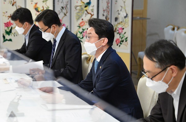 이억원 기획재정부 1차관은 12일 정부서울청사에서 ‘제38차 혁신성장 전략점검회의 겸 정책점검회의 겸 한국판뉴딜 점검회의’를 주재하고, 유류세 인하 시행과 상생소비지원금 사업 추진현황 등을 점검했다.