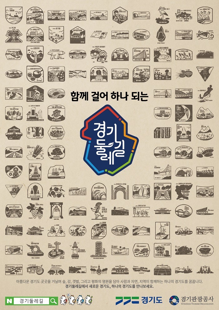 지난해에는 ‘함께 걸어 하나 되는’이란 의미를 담은 경기 둘레길 브랜드와 함께 도 외곽을 연결한 선을 형상화한 캐릭터를 개발했다. 개발 디자인은 둘레길 조성 시 종합·방향 표지판과 리본, 숲속형 이정표 등에 반영했다.