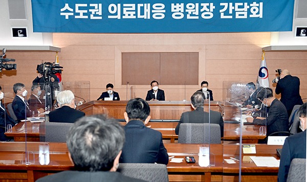 김 총리는 이날 정부서울청사 별관에서 열린 수도권 의료대응 병원장 간담회를 주재한 자리에서 “요양병원이나 시설에서의 집단감염이 부쩍 늘었고 고령층 중심으로 돌파감염이 눈에 띄게 증가하면서 수도권의 병상 부족 문제가 점점 심각해지고 있다”며 이 같이 말했다.