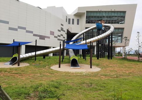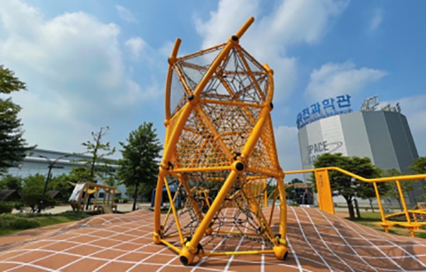 국립과천과학관 내 어린이놀이터는 휘어진 공간을 표현한 굴곡진 바닥면 위에 연결성이 높은 형태로 디자인된 미끄럼틀과 네트, 그네 등의 놀이시설을 설치해 입체적이고 조화로운 공간을 연출한 것이 특징이다.