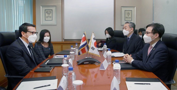 여한구 통상교섭본부장이 코스타리카 대통령의 방한을 계기로 24일 서울에서 안드레스 발렌시아노 야무니 코스타리카 대외무역부 장관과 면담을 가졌다.
