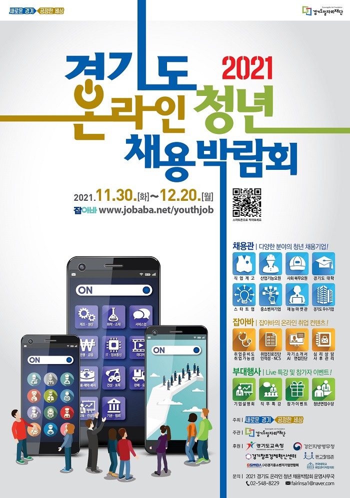 경기도가 11월 30일부터 12월 20일까지 ‘2021 경기도 온라인 청년 채용박람회’를 개최한다.