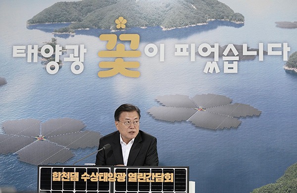 문 대통령은 탄소중립은 거스를 수 없는 국제규범이 되었고, 탄소중립을 위한 에너지 체계 전환은 미래세대의 생존과 국가 경제의 신성장동력 확보를 위한 시대적 과제라고 언급하고, 수상태양광은 가장 주목받고 있는 친환경에너지 기술의 하나라고 평가했다.