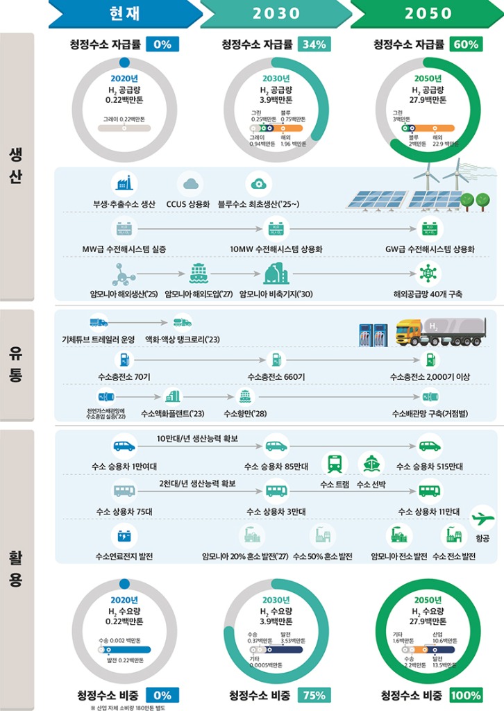 오는 2025년까지 전국 226개 시·군·구에 1기 이상 수소충전소가, 2040년까지 수소 생산·물류·소비 생태계를 갖춘 14개 수소항만이 구축된다.
