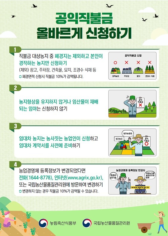 농식품부는 이번 달까지 올해 기본형·선택형 공익직불금 지급을 마무리하고 내년 4월부터 내년도 기본형 공익직불금 신청접수를 시작할 계획이다.
