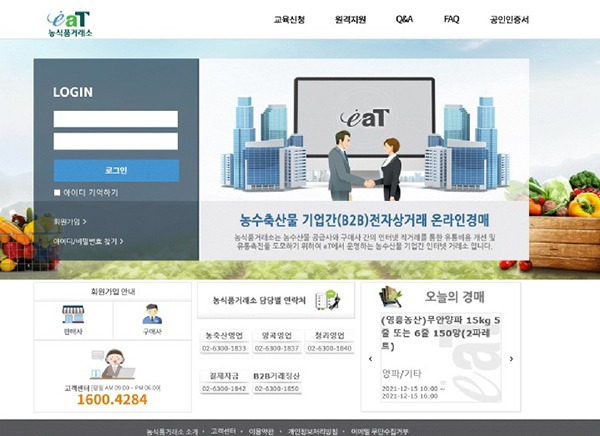 aT 농식품거래소 달걀공판장 온라인거래 화면.