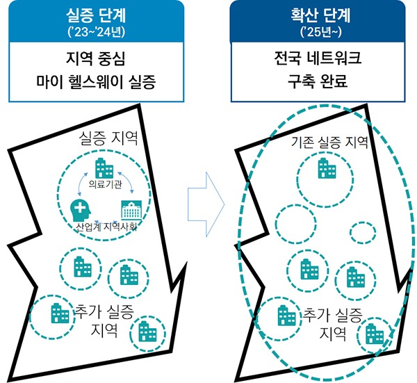 이어 2023년부터 마이 헬스웨이 실증·서비스 R&D를 통해 지역 단위 공모를 진행해 지자체, 의료계, 산업계 및 지역사회 전체가 아우러진 마이 헬스웨이 생태계 활성화 방안을 제시할 계획이다.