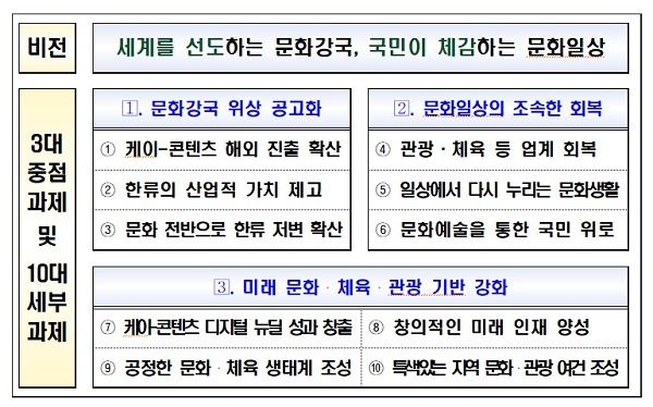 문화체육관광부는 내년에 ‘K-한류 저변 확대’로 문화 강국 위상을 다지고 문화일상의 조속한 회복과 미래 문화·체육·관광 기반 조성에 집중적으로 나서기로 했다.