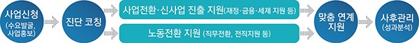 이와 함께 산업부(사업재편)·중기부(사업전환)와 손잡고 노동전환지원센터를 통한 노동전환 수요발굴-컨설팅-정책 패키지 지원으로 효과성을 높인다.