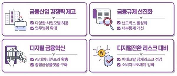 금융부문 디지털 전환과 플랫폼화를 촉진하기 위한 인프라·제도 혁신을 추진하고 금융분야 AI·데이터 활용 촉진과 금융플랫폼 구축 등으로 금융소비자보호 및 공정경쟁 기반도 마련한다.