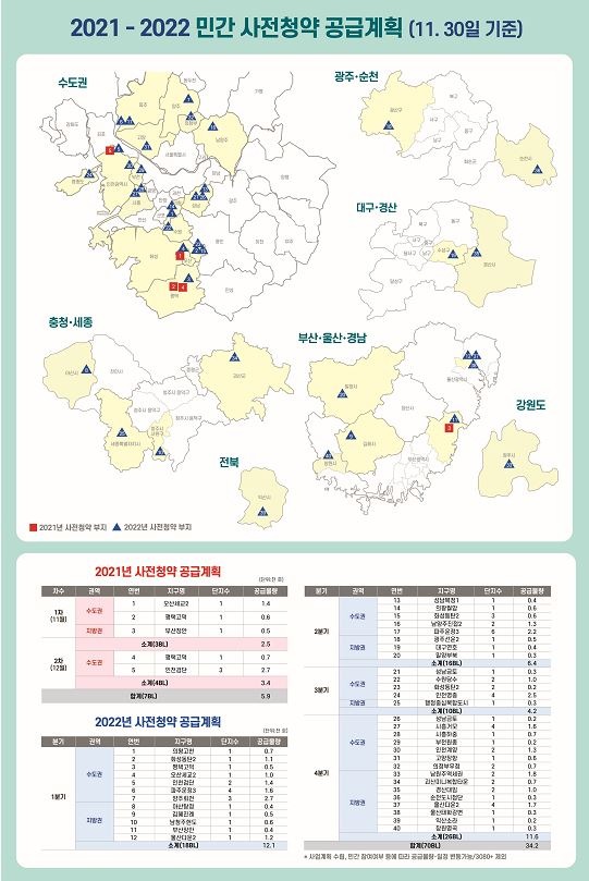 김수상 국토부 주택토지실장은 “올해 마지막 사전청약이 연중 최고 수준의 물량으로 공급돼 청약을 기다리는 실수요자들이 내 집 마련을 할 수 있는 좋은 기회”라며 “내년에도 공공·민간 7만 가구를 사전청약 방식으로 공급해 내 집 마련 기회를 앞당기고 주택 시장이 조기에 안정될 수 있도록 노력하겠다”고 밝혔다.