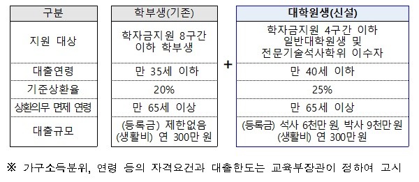 ◆ 대학원생 지원 대상 포함…상환의무 면제 연령 만 65세 이상
