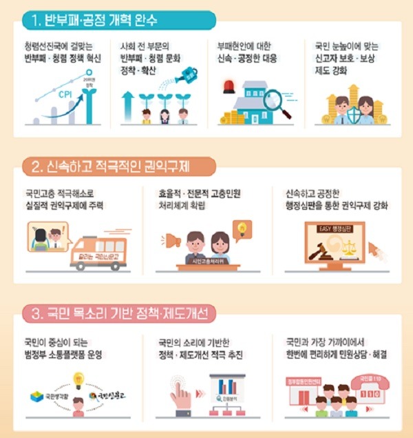 이어 “국민권익위는 반부패·공정개혁을 완수해 우리나라가 명실상부한 청렴선진국으로 도약할 수 있도록 최선의 노력을 다하는 한편, 국민고충과 사회갈등의 적극 해결로 든든한 국민권익해결사로 앞장서겠다”고 말했다.