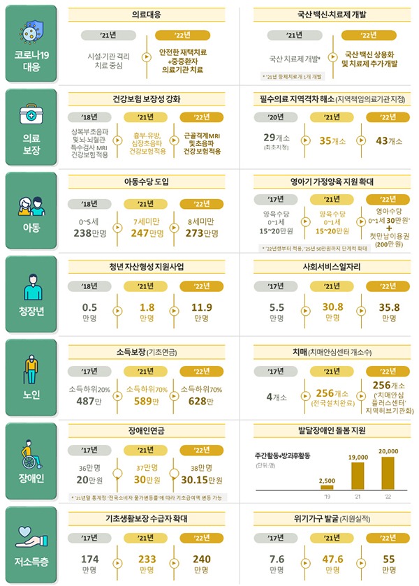 보건복지부가 2022년에는 코로나19 위기를 극복하고자 국산 1호 백신 개발 등에 5457억 원을 투입하고, 포용적 복지국가 안착을 위해 안전한 건강과 의료체계 등을 구축한다.