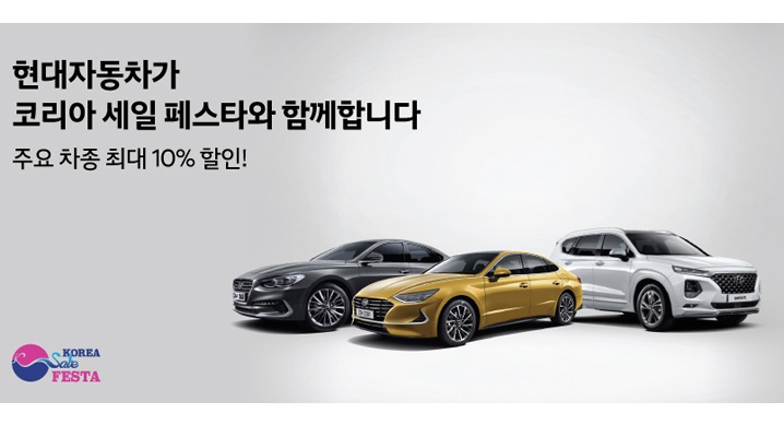 현대자동차 관계자는 “대규모 쇼핑관광축제 ‘2019 코리아 세일 페스타’를 위해 다양한 구매 혜택과 이벤트를 마련했다”며 “쏘나타, 싼타페 등 승용·RV 차종은 물론 상용차종까지 다양한 차종들을 준비했으니 고객분들의 많은 관심을 기대한다”고 말했다.