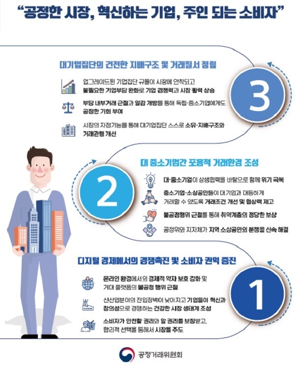 공정거래위원회는 새해 디지털 공정경제 구현으로 지속가능한 혁신기반을 마련하고, 플랫폼 사업자의 독점력 남용행위 등을 감시 감시하기로 했다.