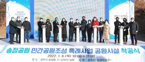 경기 광주시는 6일 송정동 71-22 일원에서 신동헌 시장, 국회의원, 도·시의원, 주민 등이 참석한 가운데 첫 민간공원조성 특례사업으로 추진 중인 송정공원 착공식을 개최했다.