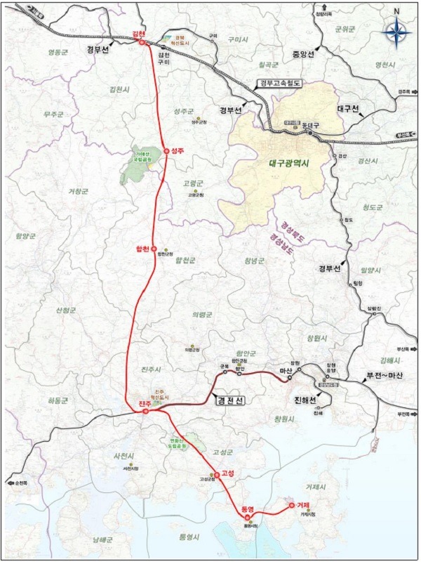 향후 철도건설이 완료되면 수도권에서 출발한 KTX·SRT가 경부고속철도를 거쳐 김천역에서 거제시까지 운행하는 노선과 진주역에서 경전선을 활용해 마산역까지 운행하는 노선이 마련된다.