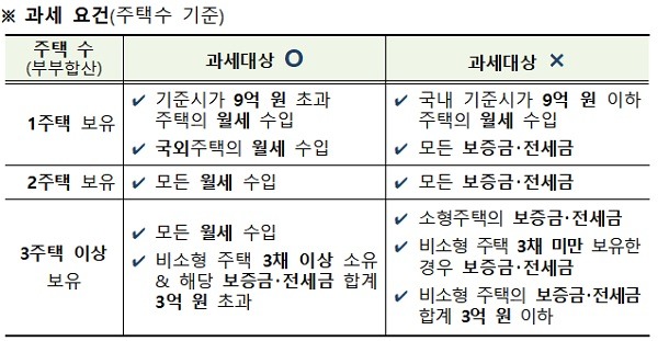 공동소유주택의 소수지분자라도 ▲해당주택에서 발생한 연간 수입금액이 600만 원 이상인 경우 ▲기준시가 9억 원 초과 주택의 지분율이 30%를 초과하는 경우라면, 주택 수에 가산될 수 있다. 단, 동일주택이 부부 각각의 주택수에 가산된 경우 부부 중 1인 소유주택으로 계산한다.