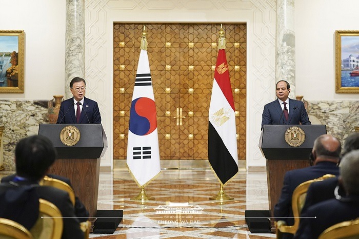 또한 문 대통령은 “양국은 호혜적 협력을 확대하기로 뜻을 모았다”며 “무역경제 파트너십 공동연구를 통해 한-이집트 무역협정 체결을 위한 의미 있는 진전을 시작하기로 했다”고 전했다.