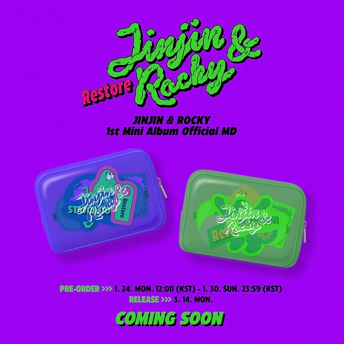 24일 정오 각종 온라인 판매처를 통해 최근 유닛으로 데뷔한 진진&라키(ASTRO)의 첫 번째 미니 앨범 ‘Restore'(리스토어) MD(머천다이즈)의 예약판매가 시작됐다.