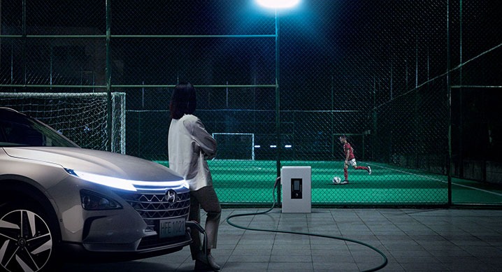 ▲아침 출근시간 교통체증을 ‘라스트마일 모빌리티’인 전동스쿠터로 유유히 빠져 나가는 여성 스타트업 CEO와 스스로 주차하는 자율주행 넥쏘의 모습 (https://youtu.be/K4BWrWN0xVQ) ▲로보틱스 기술이 적용된 ‘H-MEX’로 장애를 극복하고 경기에 임하는 장애인 양궁 선수 (https://youtu.be/3mtno9I-dCM) ▲사람이 아닌 자율주행 넥쏘와 함께 드넓게 펼쳐진 아름다운 자연풍경을 즐기는 패러글라이더 (https://youtu.be/CiL1g3VvOiY) ▲수소전기차 배터리로 밝혀진 운동장에서 자신의 꿈을 향해 연습하는 축구 꿈나무 (https://youtu.be/4tyysJa5FZM) 등 4명의 서로 다른 사람들의 시간이 기술로 더욱 소중하고 가치 있는 경험으로 바뀌는 순간을 포착해 냈다.