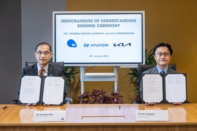 현대차그룹은 25일 싱가포르 주롱도시공사(Jurong Town Corporation)와 ‘미래 교통 수요 분석을 위한 업무 협약(MOU)’을 체결했다. 이날 싱가포르 JTC Summit에서 진행된 체결식에는 지영조 현대차그룹 이노베이션담당 사장, 탄 분카이(Tan Boon Khai) 주롱도시공사 최고경영자(CEO) 등 양측 관계자들이 참석했다.