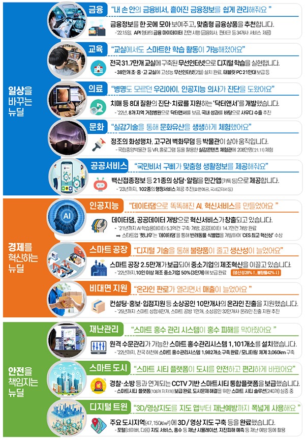 이와 함께 디지털 뉴딜을 통한 정부의 마중물 역할에 민간의 혁신 노력이 더해지면서 디지털을 중심으로 경제의 회복과 산업의 체질개선, 국민 삶의 변화가 본격화되고 있다.