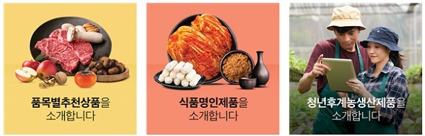 또한 각종 경연대회와 품평회 등에서 선정된 우수제품, 식품명인, 6차산업 등 약 228개 상품이 선별돼 누리집에 게재돼 있다. 과일과 쌀·잡곡, 축산, 주류, 한과·떡 등 품목별로 다양한 우리 농축수산물이 마련돼 있어 기호에 맞는 상품을 선택해 온라인으로 실시간 주문이 가능하다.