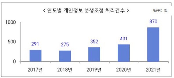 양청삼 개인정보보호위원회 조사조정국장은 “개인정보의 중요성이 점점 높아지고 있음에도 불구하고 여전히 정보주체인 국민들은 개인정보 침해로 인한 피해를 구제받기가 어려운 것이 현실”이라며 “국민의 불편함과 어려움을 조금이라도 덜어 드릴 수 있도록 지속적으로 개인정보 분쟁조정 서비스를 개선해 나가겠다”고 밝혔다.
