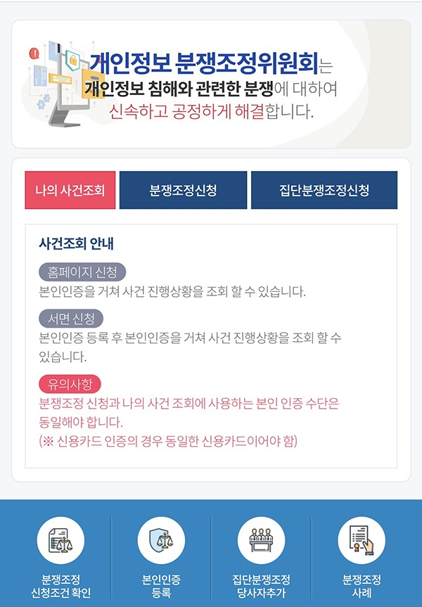 이에 따라 그동안 PC를 통해서만 신청이 가능했던 개인정보 분쟁조정을 앞으로는 스마트폰 등 모바일을 이용해서도 신청할 수 있게 된다.