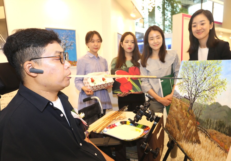 LG유플러스는 U+우리집AI로 자유로운 작품활동을 하게 된 구필화가 임경식 작가의 CSR 캠페인 영상이 SNS에서 화제를 모으며 한 달 만에 1만3천여 명의 응원을 받아 임경식 작가 포함 구족화가 5인 특별전시회를 26일(수)부터 8월 30(금)까지 용산사옥 로비에서 개최하게 됐다고 밝혔다.