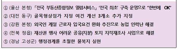 전국 최초로 부동산종합정보 열람서비스를 구축하는 등 규제해소에 앞장 선 우수 지자체 적극행정 사례가 발표됐다.