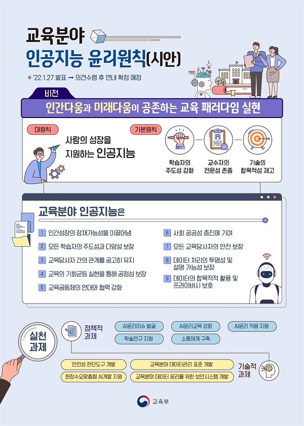 공청회에서 논의될 교육분야 인공지능 윤리원칙(시안)은 교육현장에서 인공지능을 안전하고 윤리적으로 활용하기 위해 교육계와 관련 산업계가 준수해야 할 주요 원칙을 담고 있다.