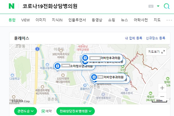 또한 포털 검색 창에서 ‘코로나19 전화상담 병의원’을 입력해 지도로 나타난 근처 병·의원에 전화로 의료상담을 한 후 의약품도 처방 받을 수 있다.