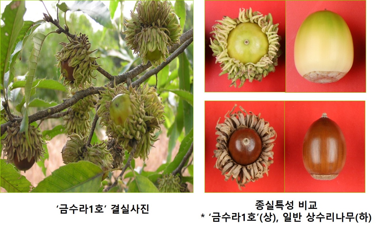 참나무류에 속하는 상수리나무는 지구온난화의 주범인 탄소를 저장하는 능력이 높고 목재를 건축자재, 표고버섯 재배용 골목으로 이용하며, 열매는 식용 및 약재 등으로 활용된다. 특히 연구에 이용된 상수리나무 신품종 ‘금수라1호’는 수년간 검정을 거쳐 열매가 크고 많이 열리는 우량 개체를 선발해 육성한 품종이다.
