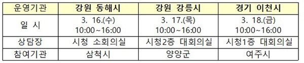 국민권익위원회가 동해시·강릉시·이천시에서 산불로 인해 피해를 입은 주민들의 불편과 행정·법률 문제, 복지혜택 수급 등 생활 속 고충을 상담하는 ‘달리는 국민신문고’를 오는 16일부터 18일까지 운영한다.