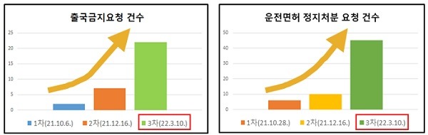 지난 1차, 2차에 비해 처분 요청 대상자가 크게 늘었는데, 이는 양육비 채무 불이행자 제재 조치에 대한 대국민 인식도가 높아지면서 양육비 채권자들이 양육비 채무자에 대한 출국금지, 운전면허 정지를 적극 요청하고 있는 것으로 판단된다고 여가부는 설명했다.