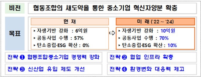이에 따라 이번 계획은 ‘중기조합’이 국내외 환경변화에 신속·유연하게 대응하는 ‘협업 플랫폼’으로 자리매김하는 데 중점을 뒀다.