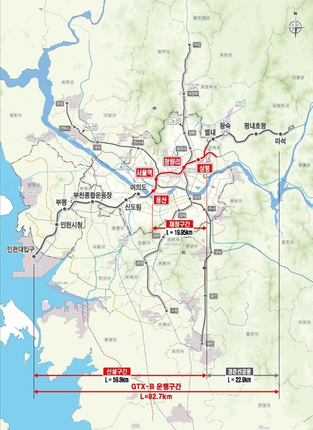 수도권광역급행철도(GTX) B노선 중 용산∼상봉 구간에 대한 기본계획을 3월 23일자로 확정․고시했다.