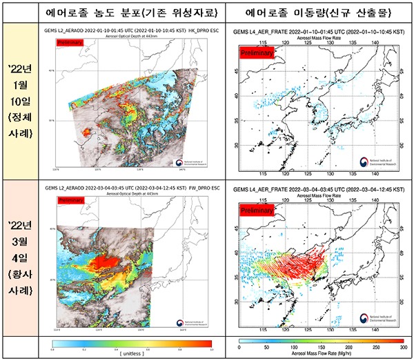 아울러 환경위성의 활용도를 높이기 위해 지난해 11월부터 ‘에어로졸 이동량 영상’을 공개하고, 지난해 12월 30일부터 ‘지상 초미세먼지(PM2.5)와 미세먼지(PM10) 추정 농도 영상’을 공개하고 있다.