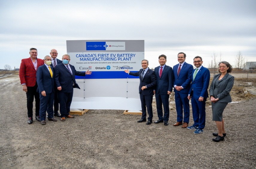LG에너지솔루션이 스텔란티스(Stellantis)와 함께 캐나다에 전기차 배터리 합작공장을 건설한다.