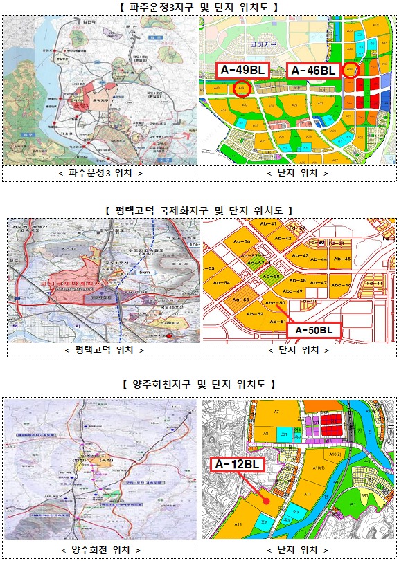파주 운정3 지구 A46블록에서는 전용 84㎡ 383가구(사전청약 345가구)를 제일건설에서 공급하고 A49블록에서는 전용 59㎡, 84㎡ 486가구(사전청약 438가구)를 시티건설에서 공급한다.