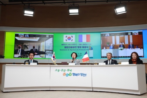실시간 온라인으로 개최된 이번 협약식은 두 도시 간의 7시간 시차가 반영돼 한국시간 오후 5시, 프랑스 시각 오전 10시에 진행됐다.