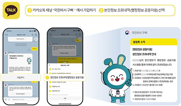앞으로 ‘본인정보 조회내역 알림’을 신청한 경우 행정정보 공동이용 과정에서 본인의 행정정보가 조회되면 국민비서 ‘구삐’가 해당 내역을 알려준다.